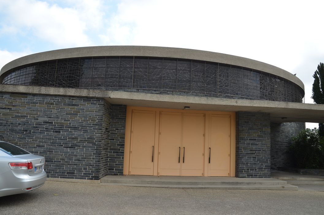 À l'intérieur de l'édifice, vingt piliers sont disposés en cercle à trois mètres du mur. Ces piliers soutiennent la voûte et tracent un déambulatoire autour de la nef. Une vaste verrière de 163 mètres carrés fait le tour de l'édifice. L'autel est légèrement excentré sur un podium en ardoises de schiste qui soulignent l'espace sacré et contraste avec la blancheur du béton. Le baptistère est situé dans une chapelle latérale à proximité de l'entrée principale. La chapelle du Saint-Sacrement, devenu sacristie, est intégré à l'arrière du chœur, séparée de celui-ci par un claustra de béton. Des salles de catéchisme prennent place sous l'église.