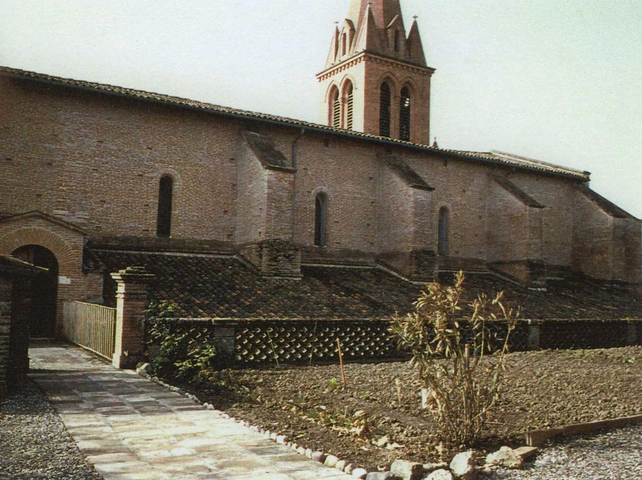 Eglise élevée d'après un projet dressé en 1551, et composée d'une nef unique, d'un chevet pentagonal et de chapelles latérales. Une topographie difficile fut sans doute la cause d'écroulements successifs (nef en 1646, mur de façade en 1771, chevet en 1812). Au 19e siècle, de grands travaux de restauration lui donnent son style néo-gothique, avec trois phases d'intervention : une campagne en 1840 qui s'acheva par le voûtement de l'édifice en 1850 ; une campagne d'embellissement autour de 1865-1870 avec la réalisation du décor peint du choeur attribué à Bernard Benezet ; une campagne de construction avec l'édification du clocher achevé par l'architecte Bréfeil en 1882.