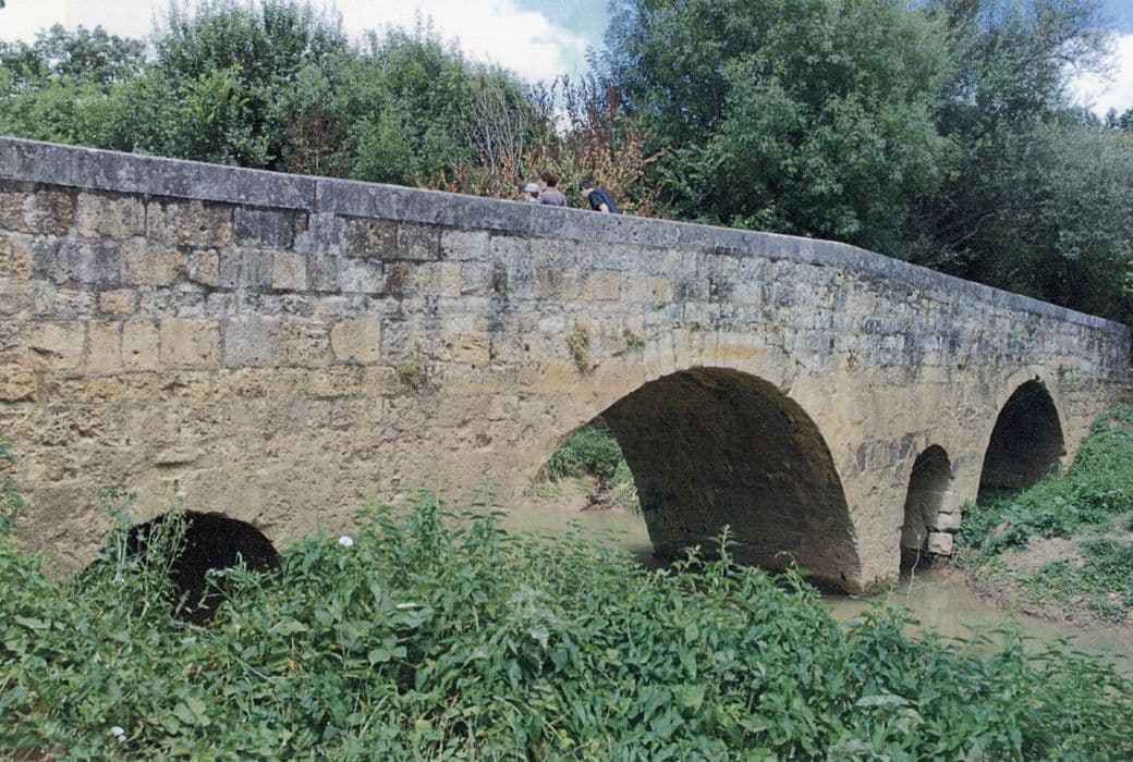 La première mention de l'existence d'un pont remonte à 1432 ; à proximité immédiate de Larressingle, c'était l'un des points de passages obligatoires de l'Osse sur l'un des itinéraires du chemin de Saint-Jacques de Compostelle. En ruine en 1723, un arrêt du conseil du roi daté de 1724 autorise les travaux, le pont étant un élément important de communication à l'échelle locale voire régionale. De 1954 à 1957, il fait l'objet de réparations en particulier la balustrade. Construit en pierre ocre, ce pont présente quatre arches de dimensions et de profils différents.