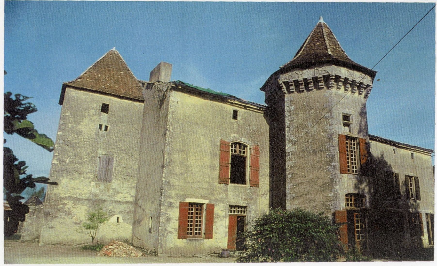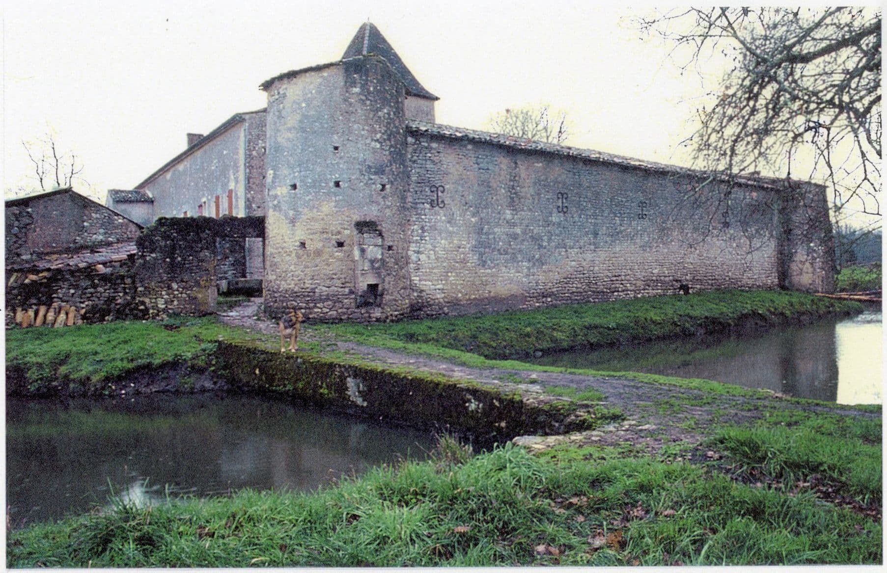 "Maison forte du 14e siècle, reconstruite fin 15e-début 16e siècle. Aile du 17e siècle perpendiculaire au corps de logis principal. L'ensemble est entouré de courtines et de fossés en eau. La tour polygonale, accolée au centre de la façade, a conservé sa couronne de mâchicoulis. Un aveu de 1774 décrit le domaine comme étant constitué de plusieurs "chambres hautes et basses, grenier, écurie, basse-cour, entourée de murailles, à l'entrée une fauconnerie où il y a eu cy-devant un pont-levis, un chai, cuvier, deux granges et maisons pour deux métayers, une affuye ou pigeonnière, un courtin à brebis et autres édifices"."