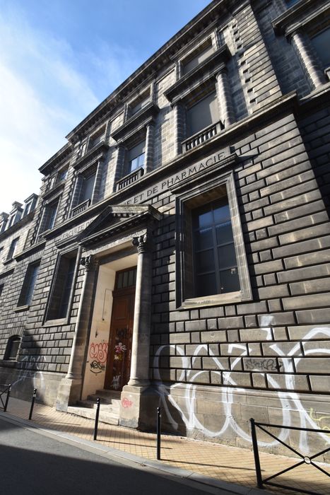 Lorsque Jean-Louis Pascal remporte en 1876 le concours pour la construction de la faculté de médecine et de pharmacie de Bordeaux, c'est déjà un architecte reconnu, qui vient d'être nommé architecte de la Bibliothèque nationale à Paris. Les travaux commencent en 1880, et voient l'édification d'un monument au plan typiquement « Beaux-arts » mais rationnel, qui tient compte des nouvelles découvertes de la médecine et intègre les matériaux modernes du XIXe siècle. L'austérité du bâtiment est aussi due aux contraintes budgétaires qui s'imposèrent à l'architecte, l'obligeant même à remanier son plan, amputé du grand amphithéâtre que celui-ci souhaitait pour une grande faculté. Son extension destinée à la faculté de pharmacie, réalisée au début du XXe siècle après la première guerre mondiale, proposera une façade légèrement surannée, achevée après la mort de Jean-Louis Pascal. Voir Anne Richard-Bazire, « La faculté de médecine et de pharmacie de Bordeaux par Jean-Louis Pascal (1876-1888 et 1902-1922) », Livraisons de l'histoire de l'architecture (En ligne), 13, 2007.