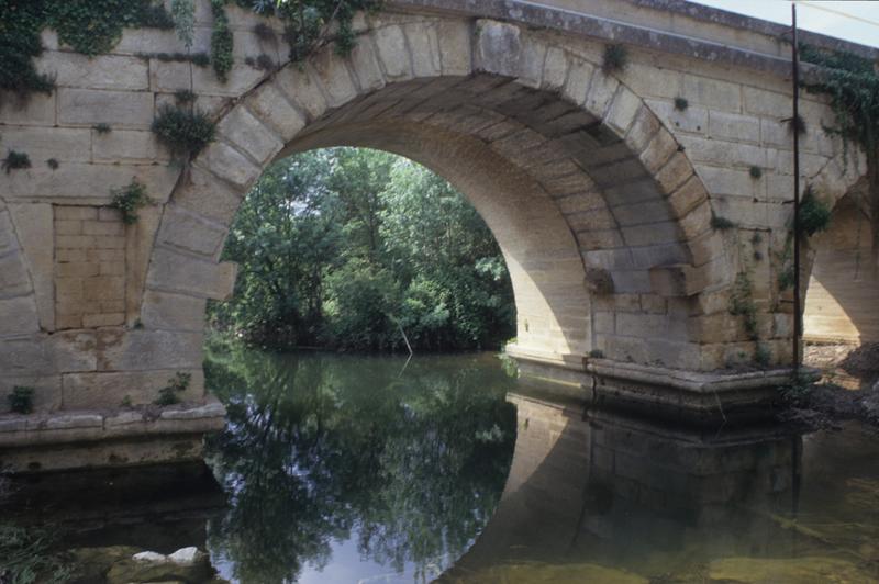 Voie romaine secondaire assurant une communication importante entre Cévennes et littoral. Le pont se compose de cinq arches inégales, en plein cintre. Dos d'âne assez marqué du fait de la largeur décroissante des arches et de la hauteur identique des naissances de voûtes. Les quatre piles rectangulaires sont dotées d'avant-becs triangulaires, et couronnées d'une imposte saillante. Des ouïes étaient aménagées dans les écoinçons pour faciliter l'écoulement des eaux pendant les crues. La construction est en grand appareil à joint vif, le parement est traité en bossages. La pierre calcaire provient des carrières calcaires locales. Le pont a été élargi en 1833-1836, masquant la face amont. Témoignage majeur de l'architecture romaine au Haut Empire. Bien transféré de l'Etat au département par arrêté du 15 décembre 2005.