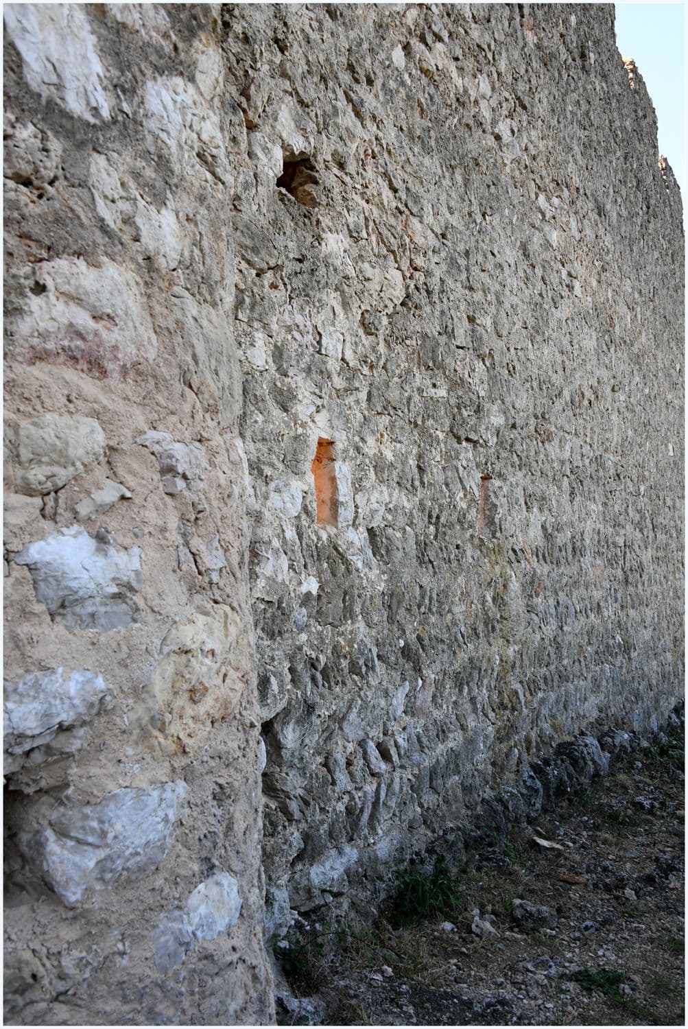 Il ne subsiste rien de visible de la forteresse mentionnée en 1097 mais un document de 1212 décrit l'implantation du Castellas avec le mur crénelé conservé : trois portes dont deux murées. Malgré les remaniements, l'emprise actuelle semble correspondre à l'enceinte extérieure initiale. Une enceinte intérieure existait certainement autour du corps de place avec la chapelle castrale Saint-Pierre, le donjon et le logis, aujourd'hui complètement disparus (démolis lors de la construction en 1864 de l'établissement religieux dont il reste des ruines : chapelle de la Salette et couvent de bénédictines-orphelinat). ). L'agglomération haute a été abandonnée à une date indéterminée mais sans doute vers la fin du Moyen-âge aux profits du bourg établi plus bas pour ne servir plus que refuge pour les troupeaux et les populations lors des périodes troublées des guerres de religion.