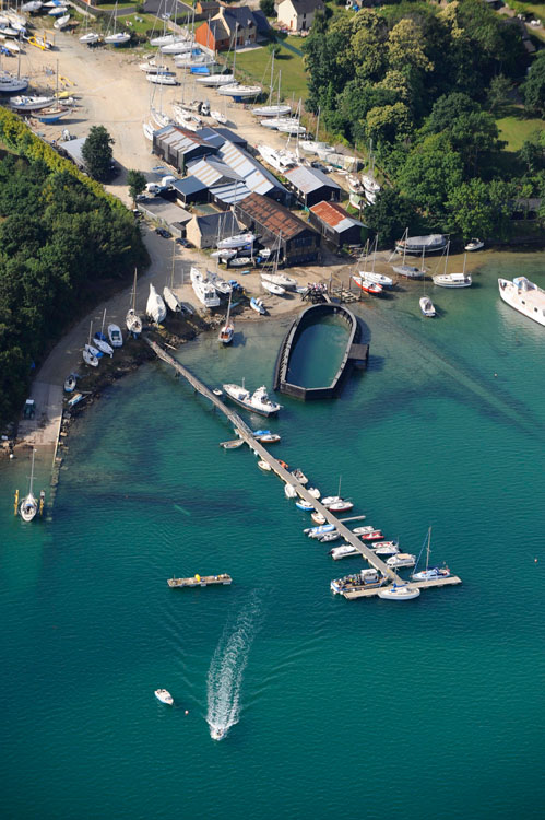 La cale sèche a été construite en 1908 par le constructeur François Lemarchand pour les besoins de son chantier naval. Il s'agit d'un ouvrage en bois de forme ovale, d'une longueur de 45 m. Une vingtaine de poteaux entretoisés sont recouverts du bordage, soigneusement calfaté. L'ouvrage fut en service de 1908 à l'aube de la Deuxième Guerre mondiale.