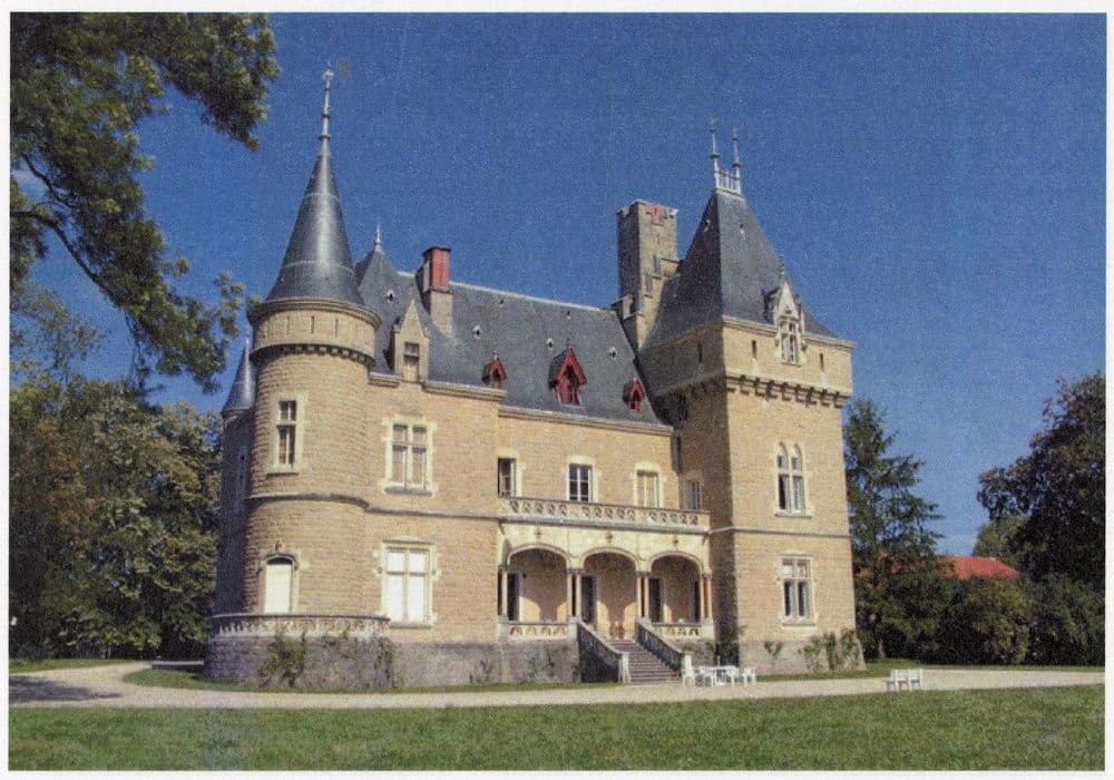 Le domaine se compose dun château du 19ème siècle, du parc qui lentoure et de bâtiments agricoles. Le château emprunte son vocabulaire architectural aux styles néo-gothique et néo-Renaissance, éléments récurrents du style Second Empire. Une autre architecture desprit vernaculaire est retenue pour la ferme, les écuries et la maison du gardien. La décoration intérieure et lameublement du château ont été réalisés par les meilleurs artisans lyonnais : peintures murales, glaces et boiseries en noyer, faux marbres et vitraux sont toujours présents ainsi que le mobilier dorigine.