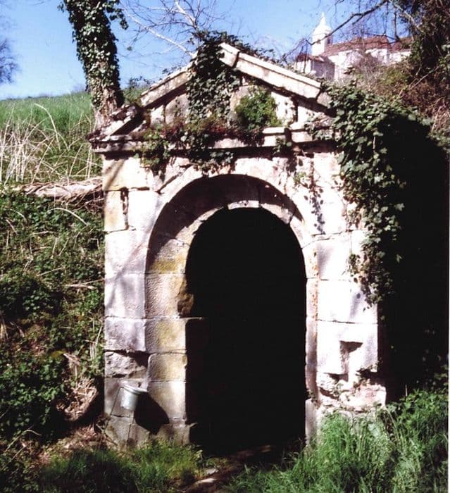 La grande fontaine se situait à distance du village, sur le versant sud, avec l'abreuvoir pour le bétail, et un lavoir. Il ne subsiste plus que l'édicule de la fontaine du 18e siècle, et des vestiges de bassins. L'édicule, engagé dans le versant, comporte une chambre de source carrée, voûtée en berceau. Sa façade en pierre de taille est formée par un arc en plein cintre à large voussure en cavet, surmonté par un fronton.