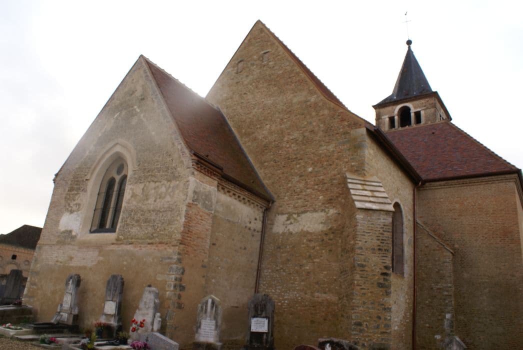 La présence de l'église est attestée à une date antérieure à 1089. La nef fut agrandie au 15ème siècle ou au 16ème et couverte peu avant 1710. Orientée et de plan en croix latine, l'édifice se compose d'un clocher-porche hors-oeuvre, d'une nef unique de deux travées voûtées d'arêtes, d'une troisième travée formant croisée entre deux chapelles et d'un choeur à chevet plat. Plusieurs fenêtres romanes subsistent à l'étage de comble. L église se dresse au milieu du cimetière et se trouve précédée d'une croix monumentale datable de la première moitié du 17ème siècle.