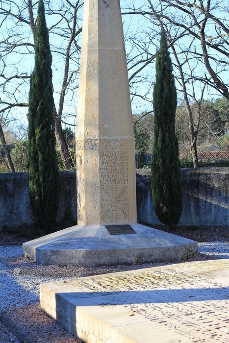 L'arrêté de classement du 18 août 2025 se substitue à l'arrêté d'inscription du 5 juillet 2005 : Le monument aux morts en totalité (cet ensemble funéraire comprend l'œuvre sculptée, statue et calvaire, le tombeau et leur terrain d'assiette en excroissance par rapport au cimetière) (cad. G 5) : inscription par arrêté du 5 juillet 2005