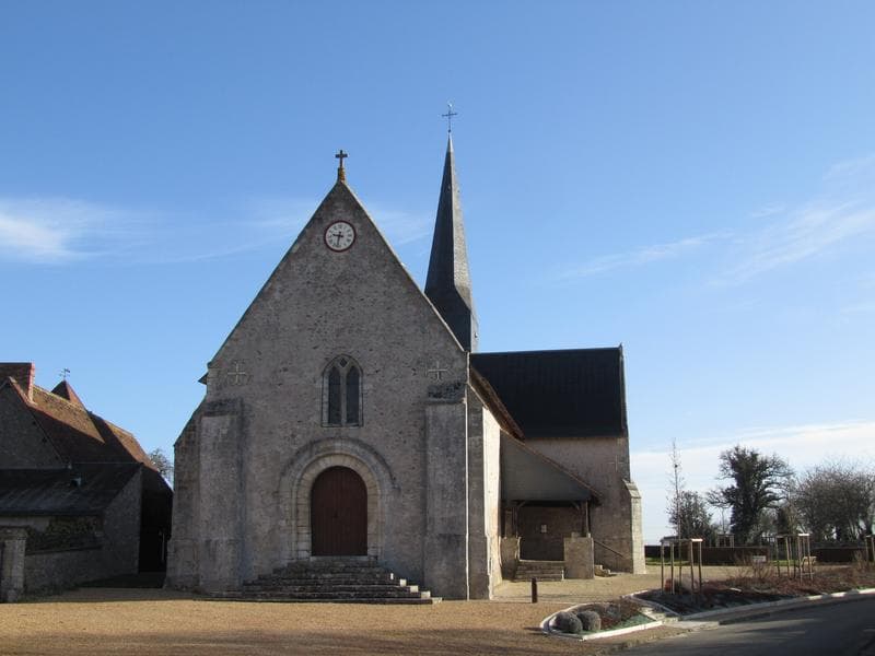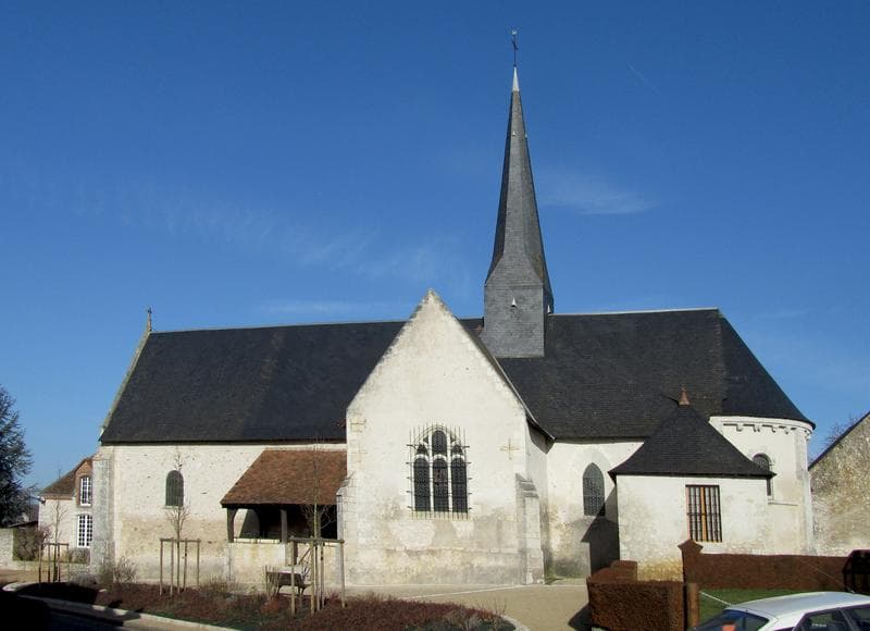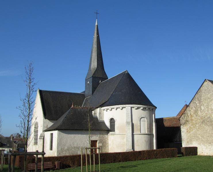 L'église dépendait de l'abbaye de Bourgmoyen. L'édifice remonte au 12e siècle et est formé d'un vaisseau terminé par une abside semi circulaire couverte d'un cul de four. Son entrée est flanquée de piliers à triple ressaut que surmontent des chapiteaux ornés de feuillages et de masques grimaçants. Un portail roman s'ouvre au sud, sous un porche du 16e siècle. Les jambages sont flanqués de colonnettes à chapiteaux sculptés. Au 16e siècle, l'église est couverte d'un lambris, la nef est flanquée de deux chapelles latérales. Des peintures murales ont été mises à jour, datant de la fin du Moyen-Age.