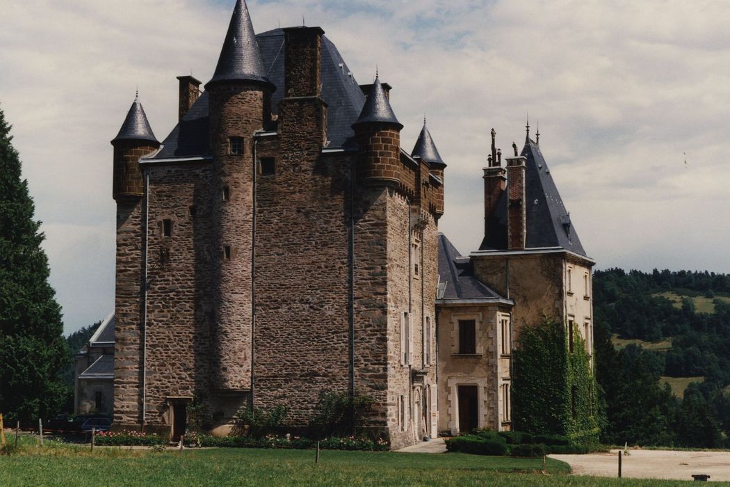 Donjon de la fin du 14e siècle. En 1653, le château passe à la famille Jourda de Vaux qui le possède encore. A la fin du 19e siècle, importante campagne de travaux : remodelage du parc par l'architecte Monnier, démolition des anciens bâtiments en 1893, puis reconstruction du château en 1893-1894 par l'architecte Martin et décor en 1895 par le peintre Mayoli.