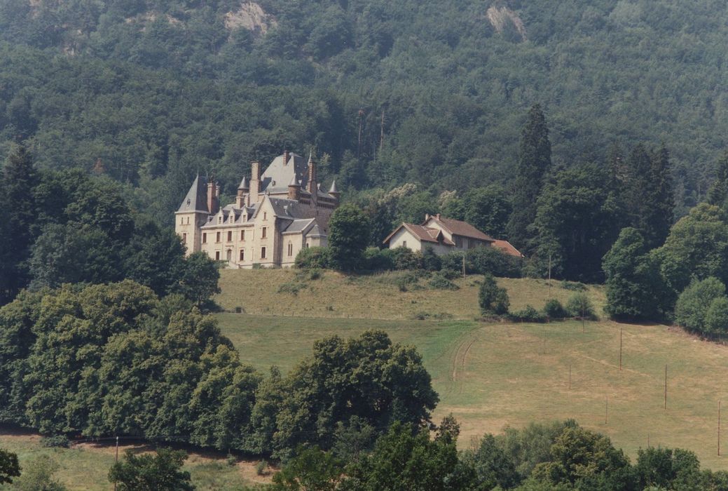 Château, y compris les décors intérieurs des pièces suivantes : cuisine, salle à manger, bibliothèque, grand vestibule, escalier d'honneur, galeries, chapelle, salon gothique, salon des batailles, chambre aux salamandres, chambres rose et verte (cad. F 96) : inscription par arrêté du 24 mai 1996