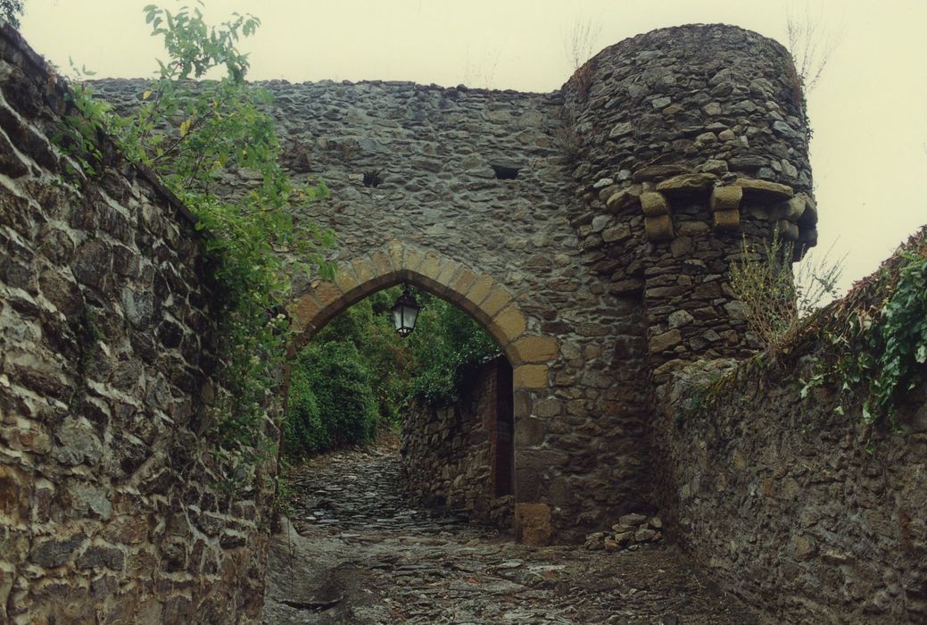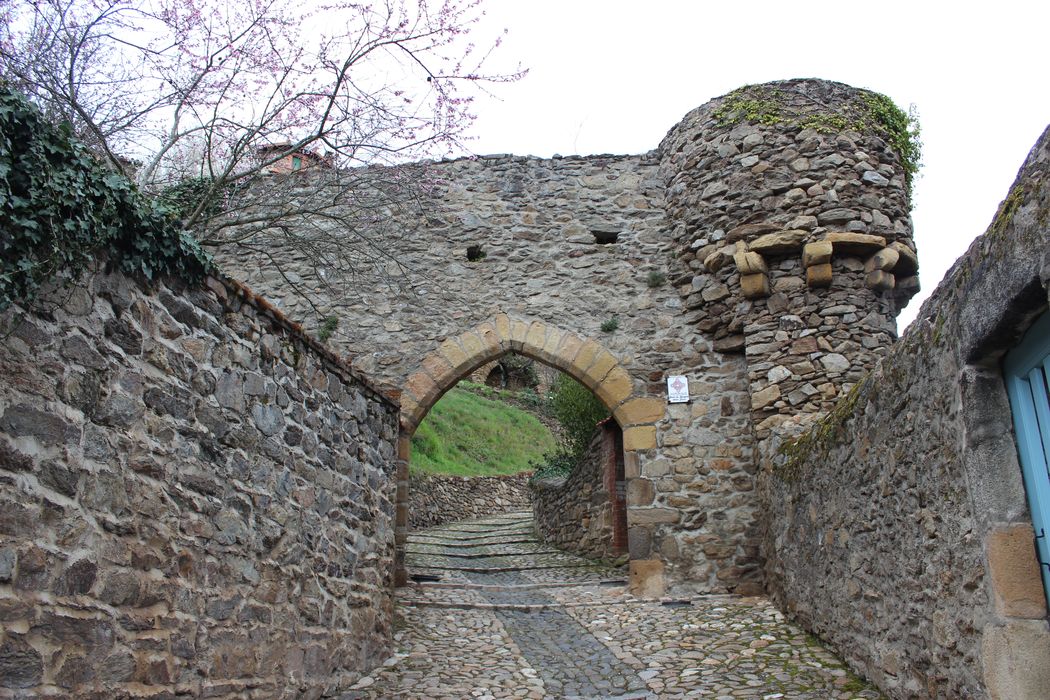 A la fin du 13e siècle, l'ancien castrum avait cédé la place à une ville. Au 15e siècle, à cause des risques d'attaques des routiers, reconstruction d'un mur d'enceinte. Si la ville était bien gardée au nord par le château et le mur d'enceinte, elle était vulnérable côté plaine. Un mur sud fut élevé et défendu par quelques tours et percé d'une porte. La porte fortifiée prit le nom du quartier, le Brugelet. La porte est constituée d'un mur en moellons flanqué sur la partie Est d'une base de tours en encorbellement qui servait à la défendre et à assurer le guet. Le mur est percé d'une ouverture en arc brisé côté sud, tandis que côté nord le passage est plus large et couvert d'un arc surbaissé mais appareillé plus grossièrement.