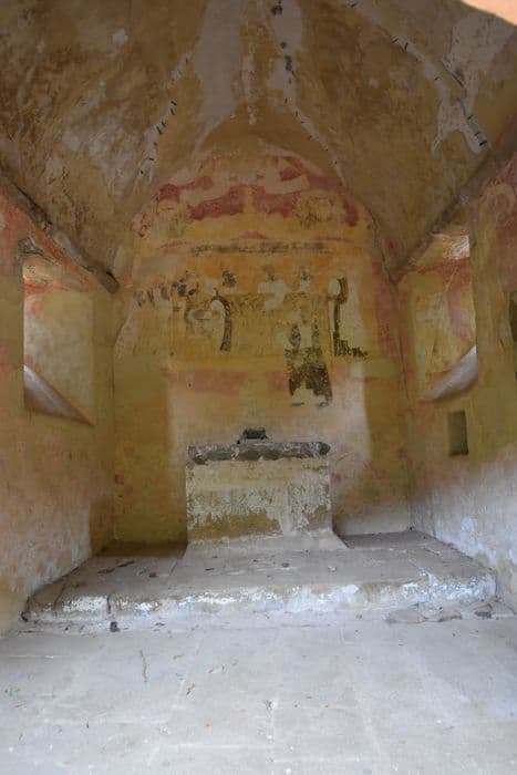 Cette chapelle, probablement édifiée en ex-voto après une épidémie de peste, abrite une salle quadrangulaire où est placé un autel en belles pierres de taille. Les murs sont ornés de peintures murales datant de la fin du Moyen-Age. Le programme pictural est en accord avec la destination de lédifice : les images simples des saints alignés sur les murs latéraux de loratoire correspondent aux pratiques dévotionnelles à lorigine de la construction de ce sanctuaire.