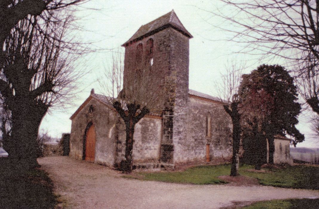 L'église relevait au 12e siècle de l'abbaye de la Sauve-Majeure. L'église souffrit des guerres de Religion. Edifice remanié à la fin du 15e siècle ou au début du 16e siècle. L'église possède une nef unique à trois travées, un chevet plat et un clocher-mur à l'ouest. Le clocher, remanié depuis la fin du 17e siècle, se présente comme un mur rectangulaire cantonné de deux contreforts angulaires avec deux murs en retour d'équerre que relie, à la base des arcades, une coursière. Contre l'édifice, s'élèvent au sud une sacristie, et à l'ouest un porche néo-gothique du 19e siècle. Sa porte en ogive annonce la porte gothique de l'église, dont la voussure en arc brisé est surmontée d'une archivolte reposant sur deux culots (tête d'homme, tête de chien). A l'intérieur, la nef conserve à l'ouest des traces de voûtement en croisée d'ogives au niveau de la tribune. Vitraux du 19e siècle. Une croix de mission en fer forgé s'élève à l'ouest de l'église.