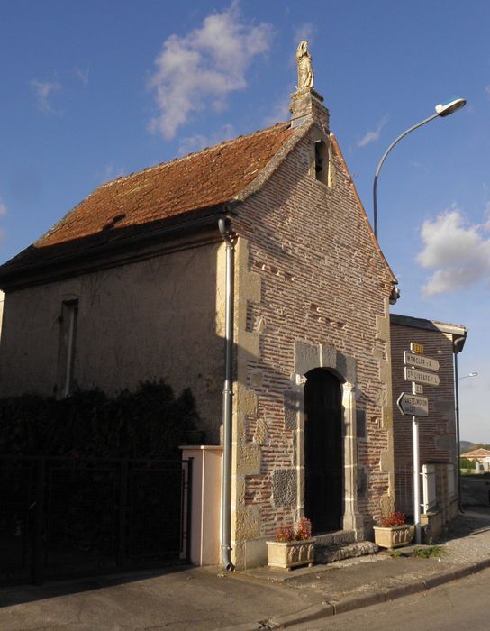 Chapelle élevée en 1749 dans le bourg, conformément au voeu des villageois confrontés à une épizootie. Elle abrite une statue de la Vierge à l'Enfant en bois polychrome du 18e siècle. Ce petit édifice en brique, de plan carré, est surmonté d'un toit à deux pans. La porte d'entrée est ménagée dans le pignon. Cantonnée de deux pilastres à chapiteaux, elle est surmontée d'un arc en pierre composé de deux sommiers et d'une clé saillante. La partie haute du pignon est percée d'une petite arcade abritant une cloche.