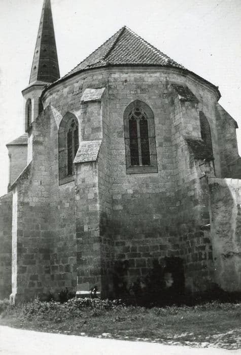 Eglise construite dans les années 1520, associant architecture gothique et décor en partie Renaissance. Plan à nef unique cantonnée de chapelles et terminée par un chevet pentagonal. Le voûtement de la nef fut réalisé en 1867-1867, et la partie haute du clocher-porche en 1893.