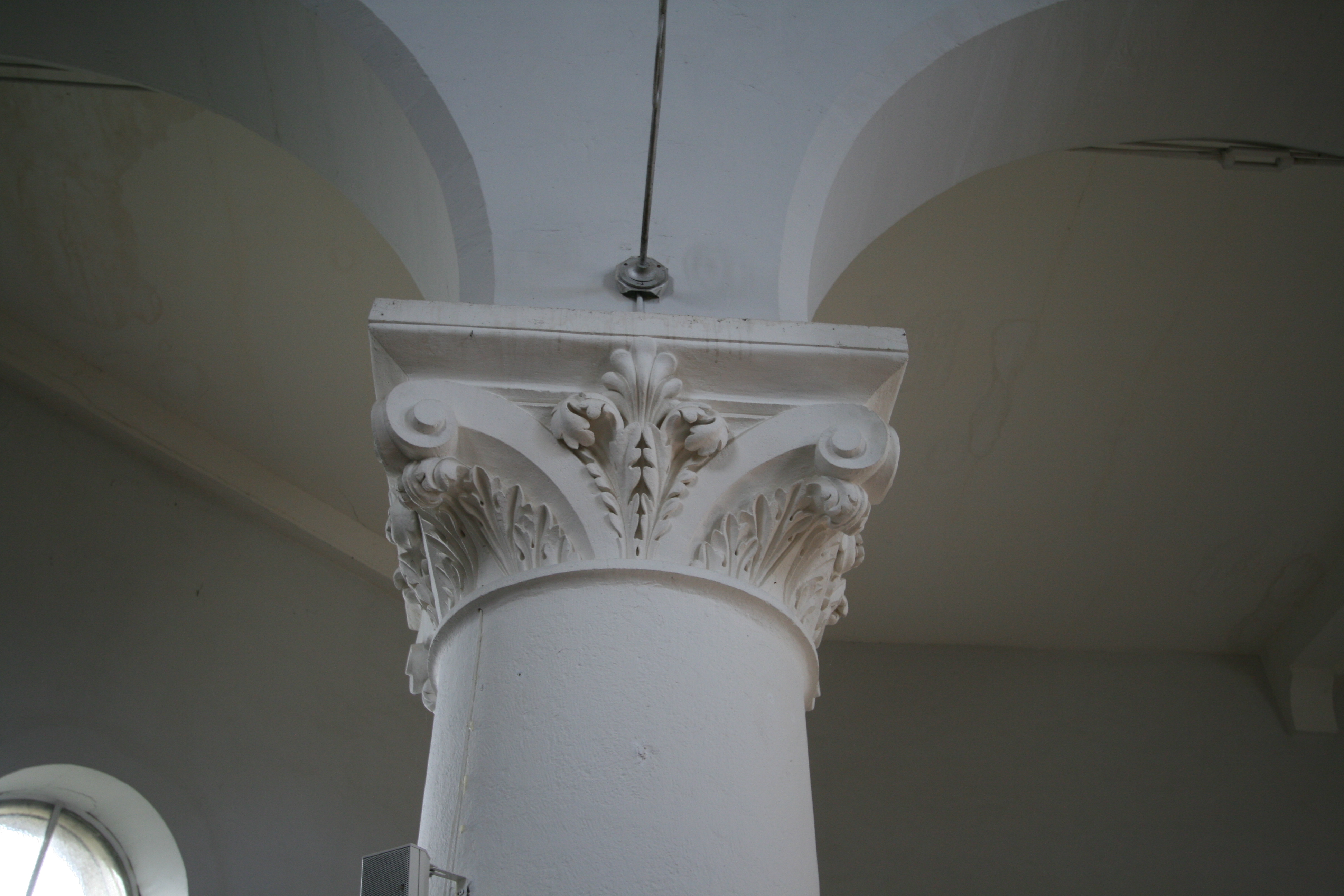 forme carrée avec des prolongations saillantes à ses angles, lui donnant un aspect cruciforme. une vaste nef encadrée par deux collatéraux.