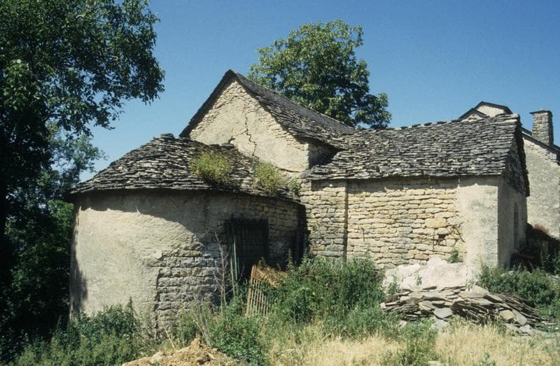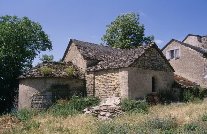 Presbytère du 18e siècle. L'église, avec ses culots sculptés et ses traces de peinture, est un témoignage rare du style gothique en Gévaudan.