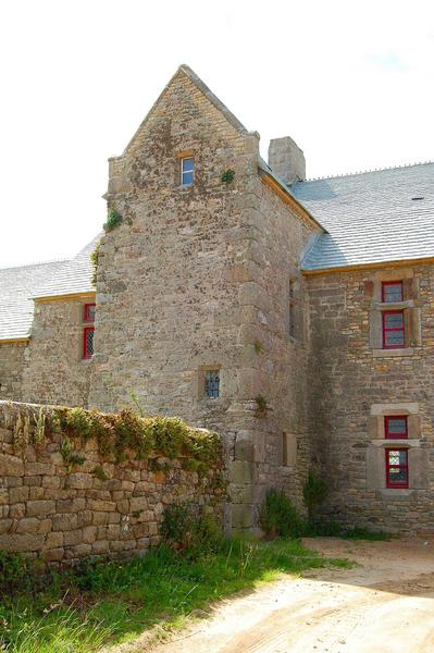 Ensemble manorial complet du début du 16e siècle comprenant corps de logis avec deux ailes perpendiculaires et une tour d'escalier en vis les reliant, surmontée d'un colombier, une chapelle accolée à l'aile nord, un pressoir avec son tour et ses deux roues en bois, une écurie, des étables, une grange, un buret (porcherie) , une boulangerie et un double porche fortifié surmonté de créneaux, une mare et un jardin.