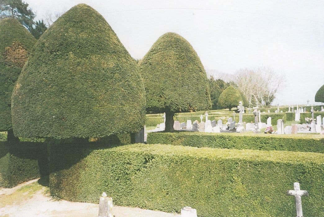 Cimetière, béni par l'évêque du Mans vers 1780, présentant un quadrilatère divisé en quatre carrés aux angles abattus bordés de haies de buis, eux-mêmes divisés par des allées en croix marquées par des ifs taillés. Un petit oratoire a été construit en 1810 à l'angle sud-ouest.