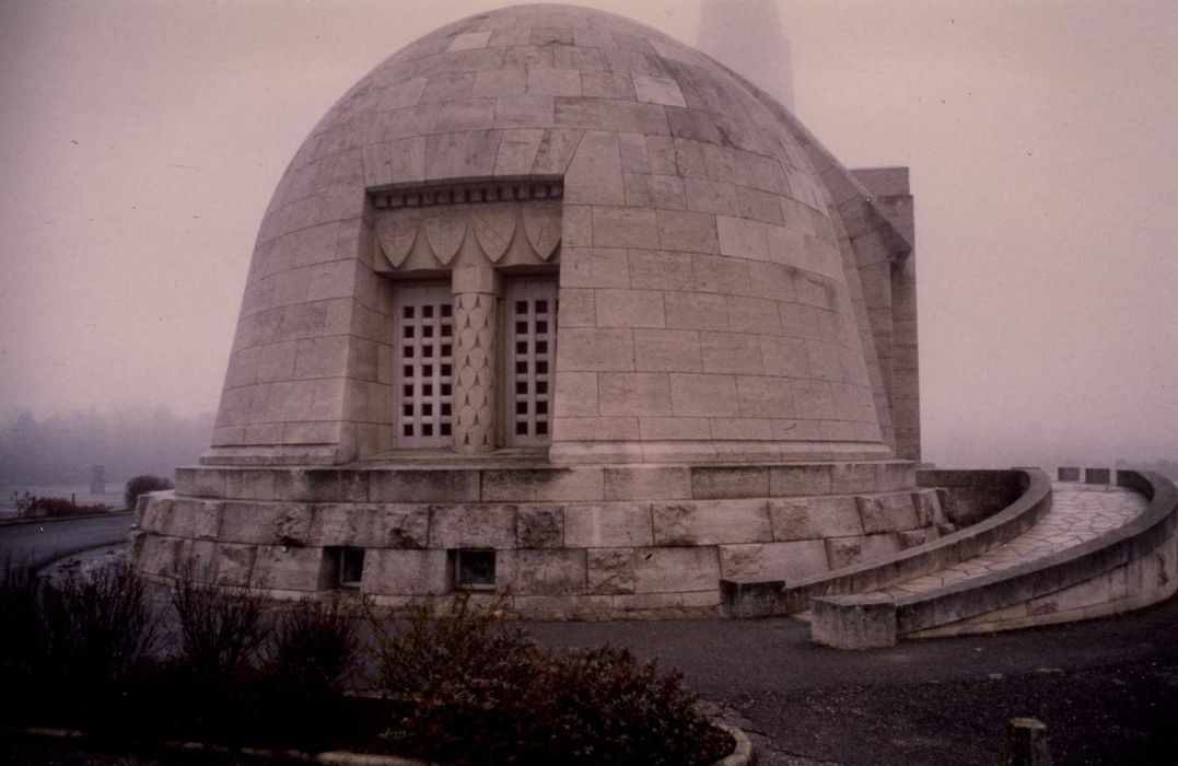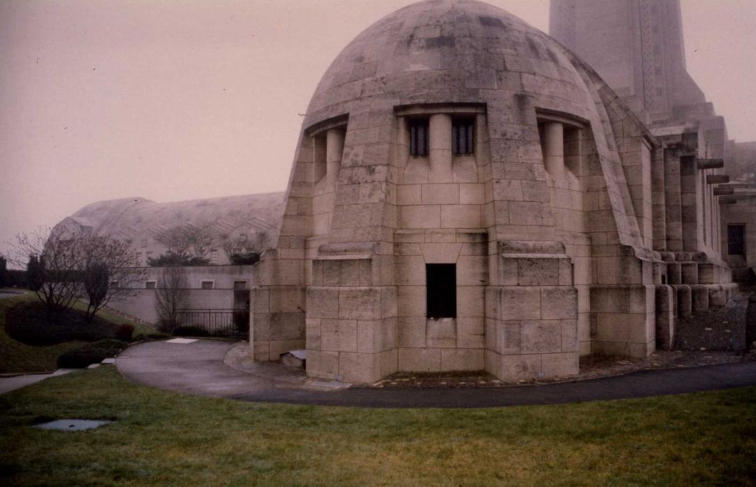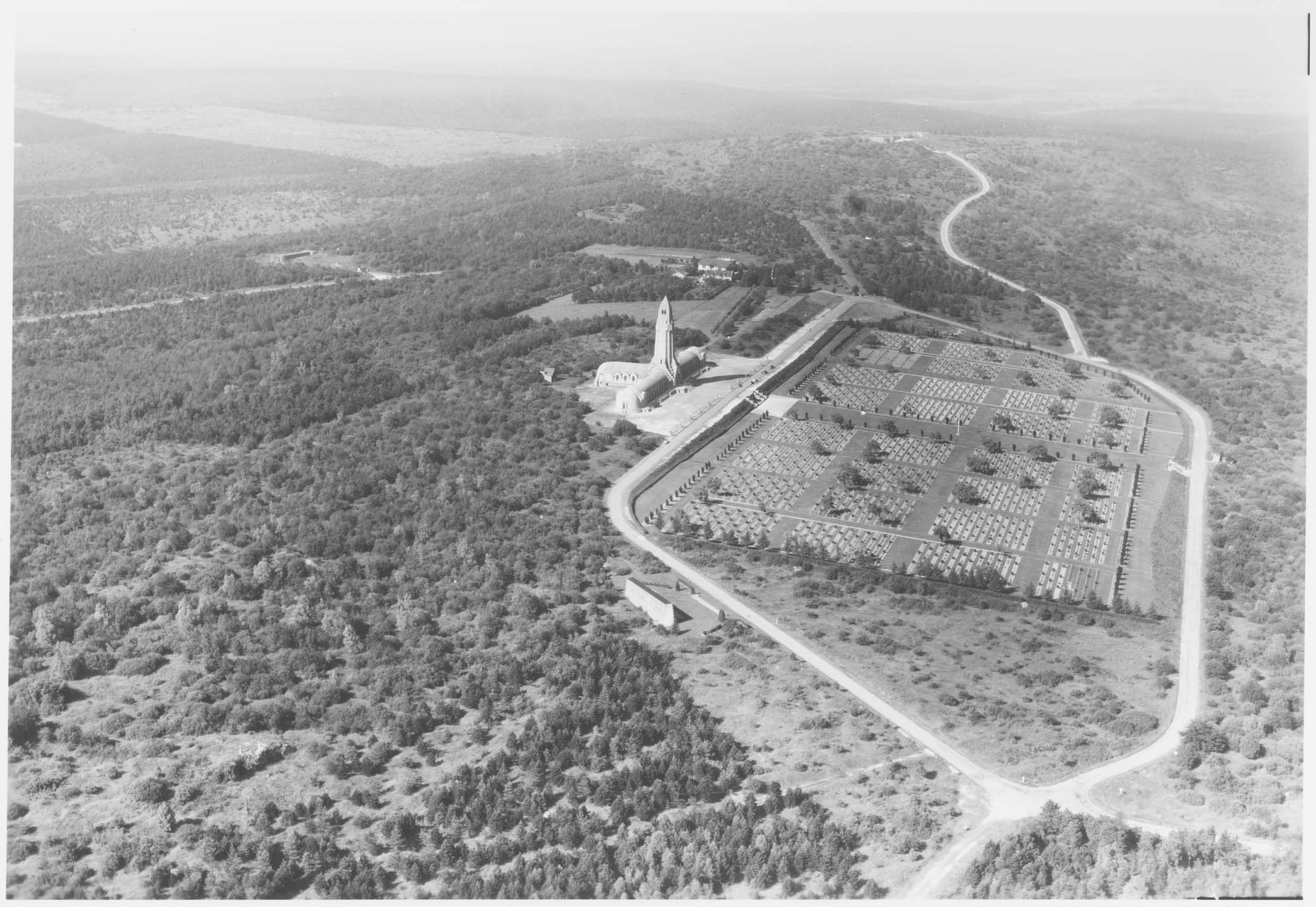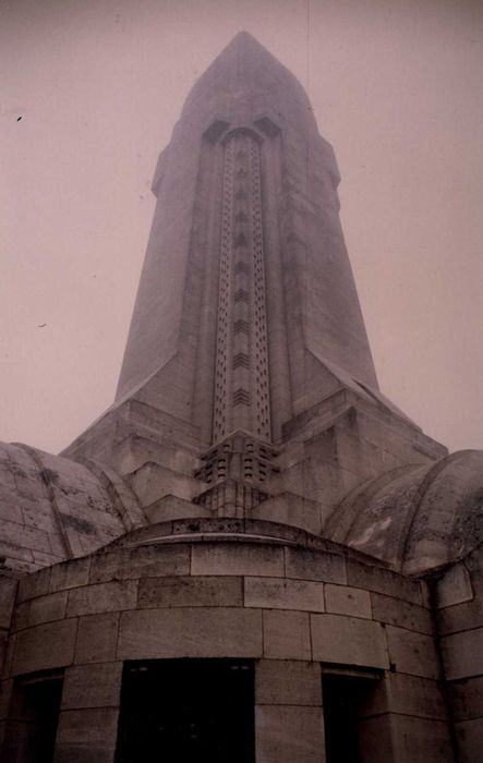 En 1919, décision d'ériger un monument consacré aux 300 000 morts français inconnus du champ de bataille de Verdun. L'ensemble devait comprendre un ossuaire, un sanctuaire catholique et un ensemble de trois édifices cultuels protestant, israélite et musulman (ces trois derniers non réalisés). Première pierre posée en 1920 par le maréchal Pétain ; inauguration officielle de l'ensemble en 1932 par le président de la République Albert Lebrun. Ossuaire réalisé selon le projet de l'architecte Léon Azéma, construit en béton armé en forme de voûte gigantesque (137, 50 m de long, 14 m de large) ; statuaire due à Berthe Girardet et Elie-Jean Vezien, vitraux de Georges Desvallières.