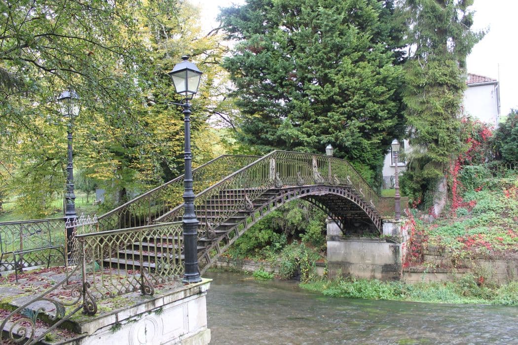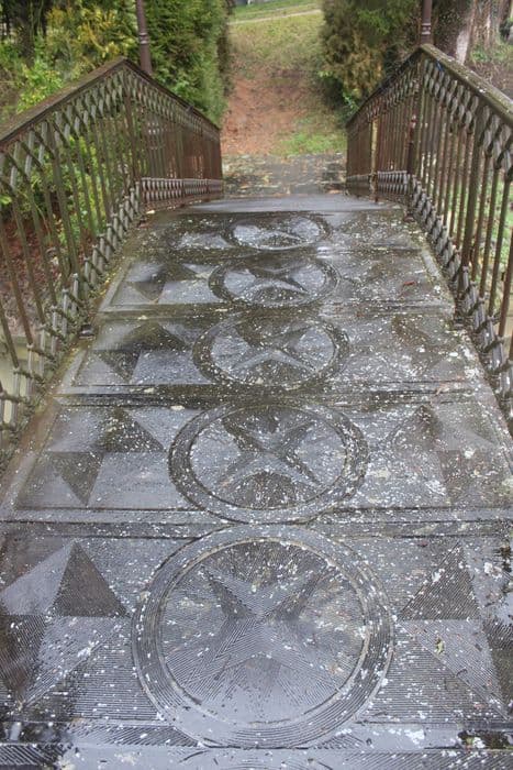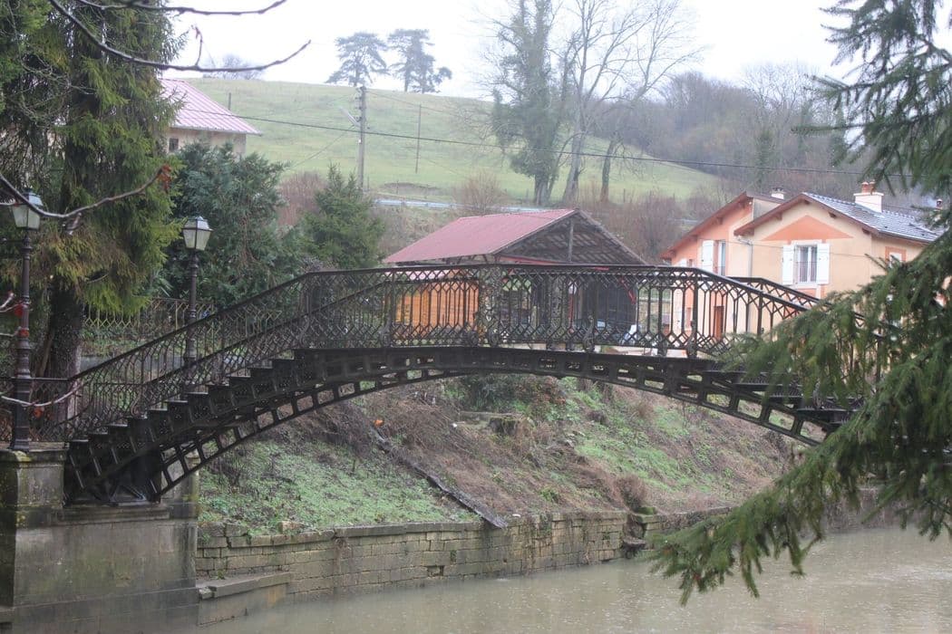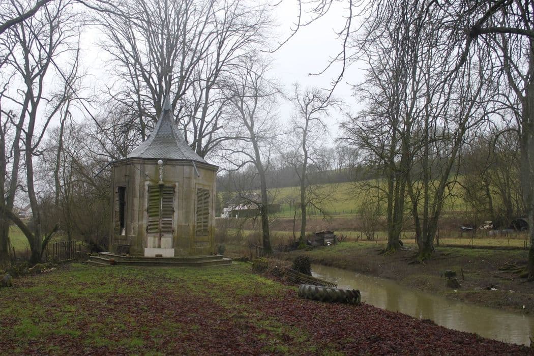 L'aménagement de l'ancien site industriel concerne essentiellement la petite presqu'île formée par le bief et le canal de fuite, sur laquelle est installé un ensemble paysager de jardins, bosquets et promenade comprenant un parc à l'anglaise, un pavillon octogonal dit salle de billard ainsi qu'un petit pavillon de jardin, tous deux en maçonnerie de pierre de taille d'Euville et couverts de toits en poivrière à ardoises en écailles.