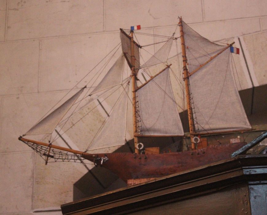 Le chanoine Abgrall réalise en 1905 une église en schiste et granite. Aucun décor intérieur n'est réalisé et les baies sont dépourvues de vitraux. Le nouveau curé Abel-Ange Rio en 1922 souhaite achever l'aménagement et fait appel à l'atelier des frères Mauméjean.