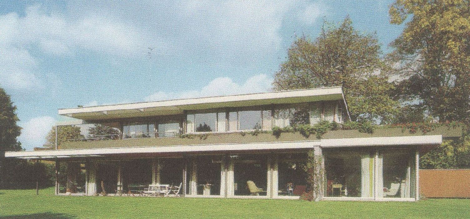 Cette maison a été construite en 1968 pour l'industriel Marcel Delcourt par l'architecte américain Richard Neutra, selon son principe de la maison de prairie, imbriquant fortement architecture et nature. Elle consiste en une longue maison vitrée de plain-pied, couverte d'une terrasse sur laquelle un miroir d'eau reflète les baies d'un étage partiel. La maison, dernière réalisation de Neutra, est restée dans son état d'origine.