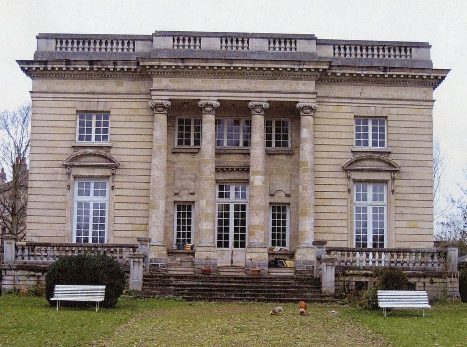 A la Révolution, l'abbaye devient bien national et est vendue par lots. Les deux tiers sont acquis par l'avocat Philippe Joseph Riquet : la partie sud avec les viviers, le jardin avec la pyramide au nord. Il fait construire le château dans l'axe du pavillon du Belvédère et des fabriques. L'édifice se présente comme une folie, reflet du Petit Trianon de Versailles. La façade principale est constituée d'un avant-corps central en légère saillie de quatre colonnes d'ordre colossal à chapiteaux ioniques formant péristyle, et d'une travée de part et d'autre surmontée d'un fronton curviligne. A l'intérieur, la forme des pièces était caractéristique des pavillons ou folies de la seconde moitié du 18e siècle et du début du 19e. Après 1824, des allées sinueuses formant un parc romantique sont tracées. Au début du 20e siècle, l'architecte Léonce Hainez fut chargé de mettre au goût du jour et de moderniser le pavillon, lui donnant son aspect actuel, et de transformer les communs.
