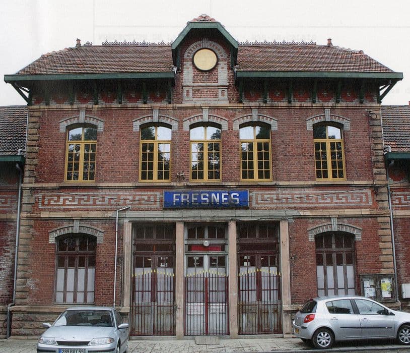 En 1835, une ordonnance royale accorde à la Compagnie des Mines d'Anzin une concession pour la construction de deux chemins de fer. En 1968, un décret impérial permet l'établissement d'une ligne de Anzin à Peruwelz, en Belgique. La ligne est opérationnelle en 1874 et dessert la commune de Fresnes. Un premier embarcadère, de forme rectangulaire, a été construit dès l'origine. Une nouvelle gare plus vaste fut élevée, ultérieurement, avec un important décor architectural, qui est celle qui existe aujourd'hui encore. Avec l'abandon des machines à vapeur pour la traction diesel, l'industrie minière amorce son déclin. La ligne de chemin de fer n'étant plus rentable, les gares disparaissent peu à peu. Finalement, les services marchandises et voyageurs disparurent en 1963. La gare de Fresnes est un des rares témoignages en bon état de ce patrimoine ferroviaire.