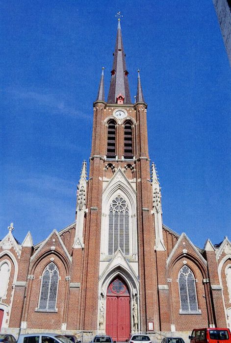 Bâti dès 1852 selon les plans de l'architecte Charles Leroy, cet édifice constitue un double témoignage de l'expansion démographique fulgurante consécutive à la Révolution industrielle et de l'implantation du style néogothique dans le nord au milieu du 19e siècle. Sa longue flèche caractéristique s'élève au milieu des cheminées d'usines et son élargissement, par l'ajout de deux nefs latérales supplémentaires, dès 1869, répond à l'augmentation continue de la population ouvrière plus particulièrement. Il s'agit d'une construction de grande taille mêlant l'utilisation de la brique rouge rehaussée de décors et d'ornements en pierre blanche. A l'intérieur, les formes médiévales, comme les voûtes d'ogives en plâtre, s'insèrent dans l'ornementation de l'édifice, centré sur un chœur liturgique très soigné et entièrement peint. En dépit de multiples campagnes de restauration, l'église a conservé son unité originelle reposant sur un style rayonnant à l'esthétique prononcée.