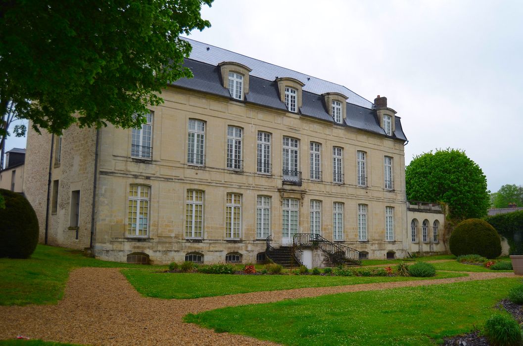 L'hôtel particulier de la rue Bellon a été construit vers 1705 pour Dame Marie de Saint Gobert, veuve d'Antoine Grondeau, écuyer, conseiller et secrétaire du Roi. Il s'agit d'un hôtel entre cour et jardin d'une grande sobriété classique, qui se caractérise en élévation par la symétrie de la structure, la rigueur des lignes et la discrétion des éléments de décor propre à la « manière simple » qui prédomine à la fin de règne de Louis XIV. Suite au percement de la rue de la République sur le flanc ouest de l'hôtel, la nouvelle propriétaire Marie Anne Catherine de Saint Leu, veuve de Nicolas Dufresne, avocat en Parlement, conseiller du roi, élu en l'élection de Senlis et subdélégué de l'intendance de la généralité de Paris, fait l'acquisition de parcelles voisines en 1754. Elle accroit ainsi le jardin et l'aménage en un vaste parc arboré en cœur de ville. L'hôtel connait de profondes transformations dans sa distribution intérieure au cours du XXe siècle, étant successivement école de fille, tribunal de Grande Instance et de Commerce puis centre social du Conseil départemental. Le jardin va quant à lui être partiellement transformé pour créer des emplacements de stationnement public.