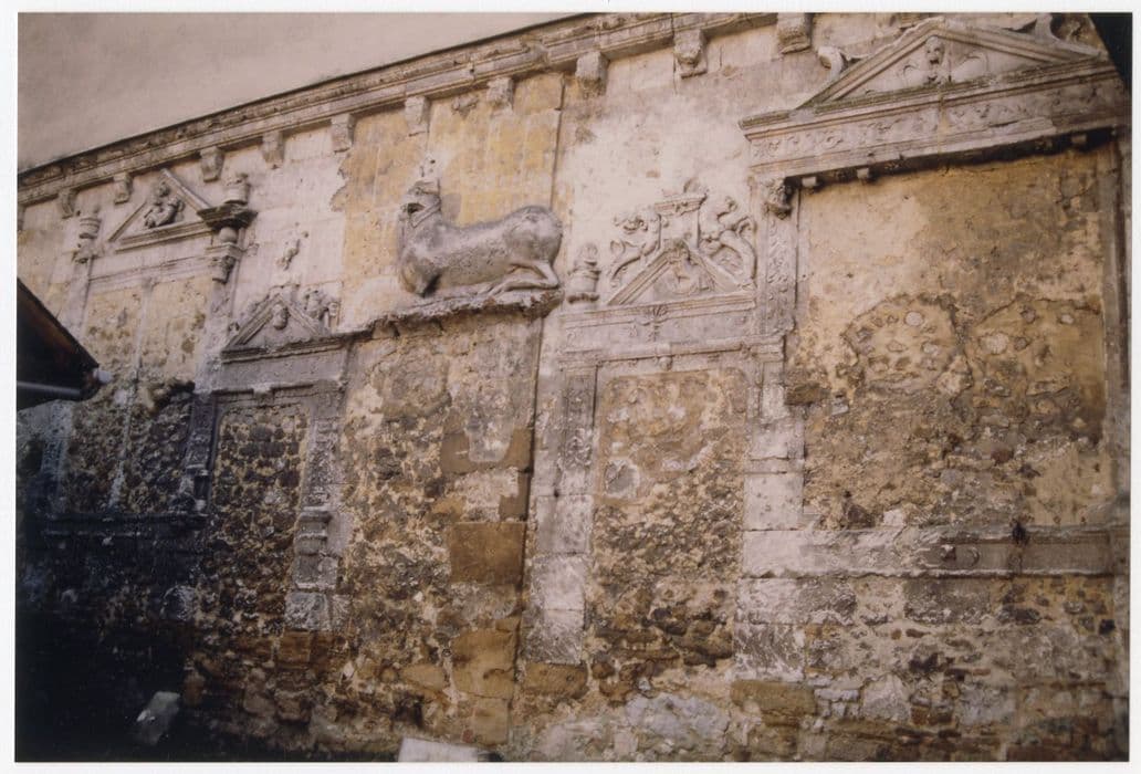 Les décors sculptés du 16e siècle sont représentatifs de la première Renaissance française dans le Perche ornais. Ce mur Renaissance est l'unique vestige de l'ancien hôtel-dieu, reconstruit vers 1515 par Marguerite de Lorraine, dit aussi hôpital Saint-Nicolas, dont il aurait constitué la façade. La variété du traitement de la sculpture est particulièrement remarquable : descentes de guirlandes, grotesques des frontons surmontés par des salamandres affrontées (en bas-relief) , pots à feu, colonnettes et couronnement des ouvertures (en moyen-relief) , un cerf à la reposée qui anime le centre de la composition (en haut-relief).
