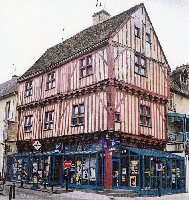 Construction élevée sur une base médiévale. Sa typologie, notamment les étages carrés en encorbellement sur sommiers, la date de la fin du 15e siècle, voire plus tôt d'après la typologie de la cave voûtée d'arêtes, et son état actuel est peut-être le résultat du regroupement de plusieurs édifices antérieurs. Les passages sous avant-soliers ont sans doute été fermés au 17e siècle, pour aboutir à leur aspect actuel. C'est un édifice emblématique de l'architecture civile d'Alençon, à pan de bois et à pignon sur rue.