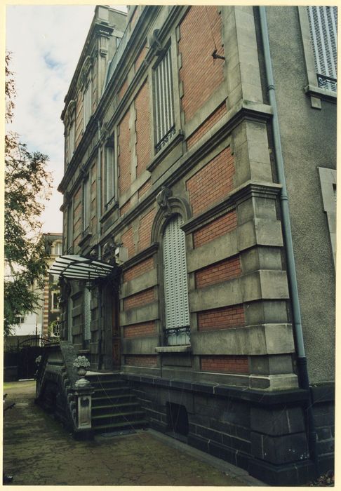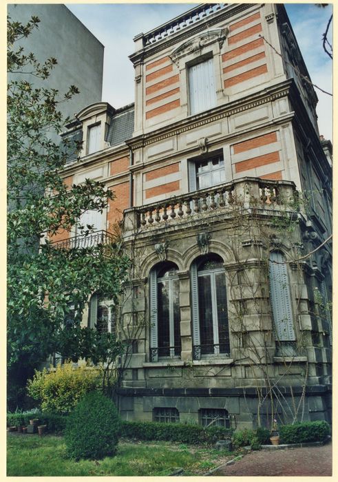 Villa en brique et en pierre dont l'originalité du décor est constituée par l'alternance de bandeaux de pierre et de brique. Toiture à terrasse.