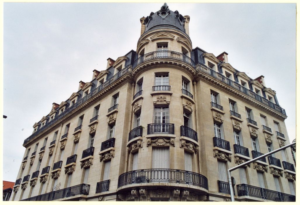 Immeuble de rapport néo-haussmanien, commandé en 1903 à l'architecte Emile Chassaigne. De style Beaux-arts néo-Louis XVI, il suit le modèle de l'immeuble bourgeois parisien, avec son balcon continu le long du dernier niveau, et sa tourelle d'angle sous coupole. Un passage d'entrée couvert dessert une cour intérieure qui possède deux cages d'escalier : une cage dans-oeuvre avec des baies rampantes ; une cage hors-oeuvre à toit terrasse, ayant la particularité de contenir deux escaliers côte-à-côte, l'un d'honneur avec un ascenseur, l'autre de service.