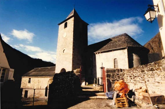 L'église Saint-Pierre de Cette fut construite, semble-t-il, dans la deuxième moitié du 12e siècle. Comme souvent en Béarn, une abbaye laïque, mentionnée dès 1385, fut établie contre celle-ci, et accolée au côté ouest : ce bâtiment devint ultérieurement le presbytère, transformé en ferme au cours du 19e siècle, puis en simple étable et, en partie, en garage. Après la fin des troubles religieux, au 17e siècle, l'église s'agrandit d'une chapelle nord avec un retable de marbre et d'un clocher-porche au sud. Le choeur reçut son décor mobilier aux 18e et 19e siècles. A l'intérieur, le lambris et les crépis sont le résultat de deux campagnes de travaux exécutés dans les années 1990. Un décor peint, dans l'abside, vient d'être tout récemment découvert