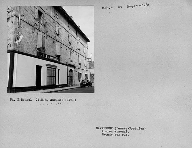Construit vers 1680, cet ensemble comporte trois corps de bâtiments en U, à trois étages, disposés autour d'une cour centrale. L'édifice a réutilisé les murs de l'ancienne maison des rois de Navarre (traces de portes et de fenêtres du 15e ou 16e siècle). L'arsenal pouvait abriter une quantité considérable d'armes et de munitions.