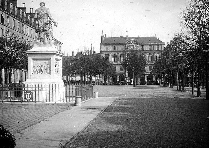 Le théâtre de Pau prend la place des vestiges de l'église Saint-Louis, inachevée. En 1839, le maire demande à l'architecte, Pierre-Bernard Lefranc, l'étude d'un projet de construction comprenant dans le même bâtiment, théâtre, salle de concert et cercles. Jamais payé à l'architecte, le projet est enterré. Il est repris en 1854. L'architecte, Gustave Lévy, est chargé de la mise en oeuvre des plans de Lefranc. Le théâtre, inauguré en 1862, présente des décors sculptés de la manufacture Virebent. En 1876, le conseil municipal décide d'acheter le théâtre et ses dépendances pour transformer la partie sud du bâtiment en mairie.