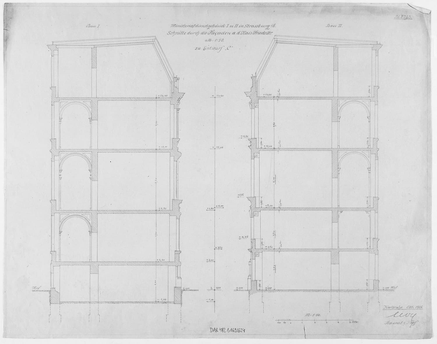 Ancien bâtiment ministériel (ouest) , actuellement Direction régionale des impôts, Direction des services fiscaux du Bas-Rhin (4 place de la République) , Trésorerie générale de la région Alsace et du département du Bas-Rhin (25 avenue des Vosges)