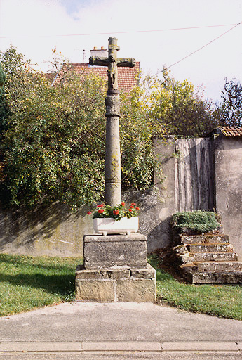 La croix s'élève à une cinquantaine de mètres au nord de l'église. Construit en grès des Vosges, le monument comprend : un soubassement maçonné ; une base massive ; une colonne monolithe ornée d'une bague sculptée de guirlandes et d'un cordon torsadé, et couronnée d'un chapiteau campaniforme au-dessus du millésime 1577 ; une croix aux croisillons décorés de motifs végétaux portant un Christ.