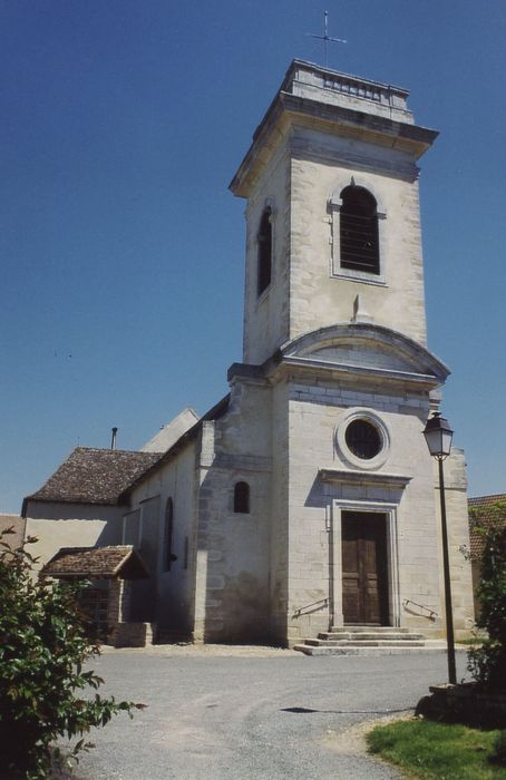 Eglise bâtie à la fin du 15e siècle, dont il ne reste que le choeur couvert d'une voûte sur croisée d'ogives. Au 18e siècle, reconstruction de la nef, flanquée de deux chapelles ; construction d'une tour de clocher porche et décor du choeur par une peinture murale. Au 19e siècle, reconstruction de la fausse voûte de la nef.