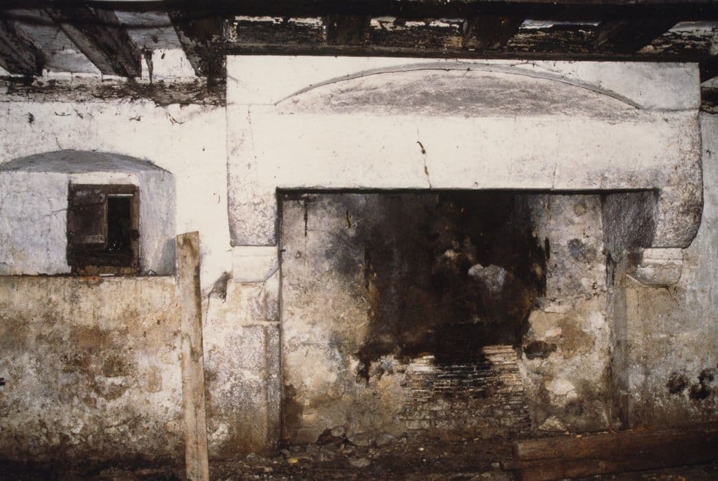Le manoir de Mirebeau se trouve à quelques distances de la gare de Beaumont, sur les basses terres bordant le cours de la Sarthe. L'ensemble occupait au 18e siècle un emplacement délimité au Nord et à l'Est par un ruisseau qui formait douve et qui est toujours partiellement en eau de nos jours. Le plan de 1785 fait état d'un ensemble de bâtiments avec un corps de logis en équerre précédé d'une cour dont l'entrée est encadrée par deux corps de bâtiment presque parallèles, celui de gauche étant accoté d'un four au Nord. A l'Ouest se trouvent deux parcelles (205 et 206) correspondant sans doute à un verger et une basse-cour ; sur la parcelle 205 est indiquée en pointillés l'ancienne fuie démolie en 1776. Le manoir comprenait, si l'on se réfère à la montrée de 1771, le corps actuellement subsistant et, en retour d'équerre, des dépendances pour les bêtes et les remises, qui subsistaient encore en 1836 d'après le cadastre. Actuellement, il ne reste que la partie d'habitation. Il s'agit d'un corps de logis de modestes dimensions de plan rectangulaire de deux travées couvert par un toit de pente moyenne en tuile plate. Il est flanqué au Nord par une annexe en appentis contenant le fournil. Ce corps de bâtiment se divise en deux niveaux : au rez-de-chaussée, un niveau bas couvert par un plancher divisé à l'origine en deux : une pièce à usage domestique, séparée par une cloison en pan-de-bois (disparue) d'un corridor transversal conduisant dans le fournil ; à l'étage, une salle sous comble couverte par une charpente plafonnée en torchis, séparée par une cloison en pan-de-bois d'une petite chambre surmontée d'un grenier en demi-niveau. A l'origine, on accédait à l'étage par un escalier transversal dont la volée montait probablement de l'autre côté du mur de refend, aujourd'hui disparu ainsi que le corps de bâtiment en retour. Il débouchait probablement dans la petite chambre par une porte médiane aujourd'hui obturée ; après la disparition de cet escalier, qui remonte à une date antérieure à 1771, on a supprimé la cloison de pan-de-bois séparant la pièce basse du corridor et construit un escalier tournant sur mur d'échiffre grossièrement monté et arrivant au seuil de la salle de l'étage supérieur, escalier dont la trémie prend sur la surface de la petite chambre. Le logis est éclairé au rez-de-chaussée par une baie modifiée à une époque récente mais qui conserve sa plate-bande de couvrement, et par un petit jour à châssis ouvrant pratiqué dans le pignon à gauche de la cheminée, et à l'étage par deux fenêtres passant-en-lucarne dont le gâble a malheureusement été mutilé. L'intérieur de la maison conserve, malgré quelques lacunes, un important décor peint en partie masqué par les badigeons successifs. Au niveau bas, on distingue un décor de petits rinceaux peints à l'ocre rouge sur l'ébrasement de la fenêtre, ainsi qu'un décor de petits traits posés en bande sur le manteau de la cheminée, alternativement jaune et rouge. A l'étage, la salle est entièrement recouverte de décor peint. L'ossature du pan-de-bois et de la charpente à chevrons-portant-ferme avec sous-faîtage, chevrons, aisseliers et jambettes courbes sont alternativement peints en rouge, jaune et noir ; le hourdis du plafonnement de la charpente est recouvert d'un badigeon au lait de chaux blanc orné de branches d'arbres à l'ocre rouge à feuilles de chêne ou de laurier à l'ocre jaune ou au blanc et de petites baies au tampon ; la cheminée est peinte en alternance à l'ocre rouge et jaune selon les faces de la mouluration des piédroits et chapiteaux, et la hotte, recouverte d'une épaisse couche de lait de chaux, semble entièrement peinte d'un échiqueté rouge et blanc. Il ne semble pas qu'il y ait eu de décor dans la petite chambre contiguë.