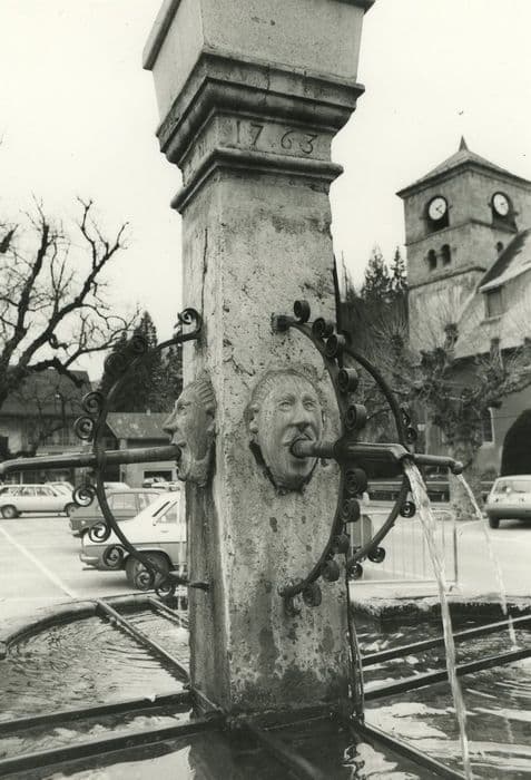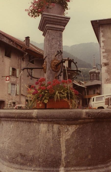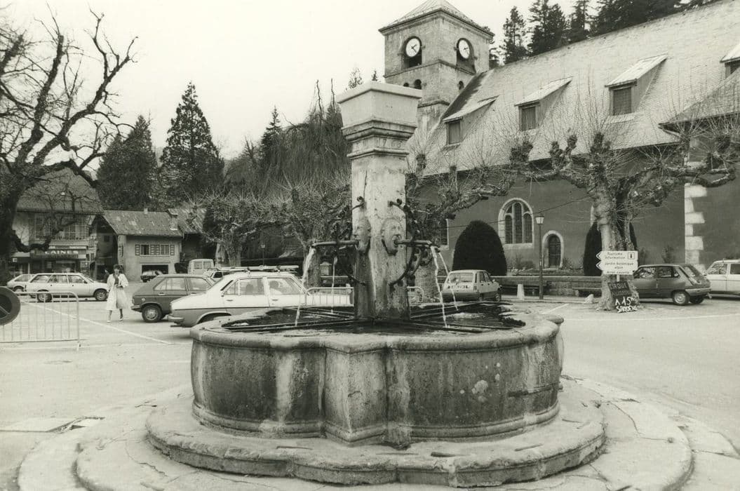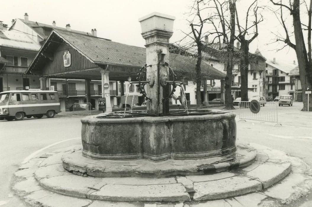 La décision d'édifier une fontaine sur la place publique est prise le 26 juillet 1761 par une délibération du conseil de la communauté de Samoëns, afin que les septimontains puissent profiter d'une eau plus pure. Le 16 août 1761, les bourgeois de la ville décident d'y contribuer pour la fourniture en argent et par la fourniture des bois qui seront pris dans les endroits les plus à portée du bourg et de chaque hameau de ladite paroisse. Les habitants sont mis à contribution par le moyen des corvées nécessaires pour le transport des matériaux et creusement des canaux. L'ouvrage est confié aux frères Morrand de la paroisse de Sixt.