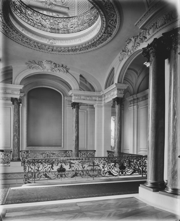 L'ensemble des façades et toitures de l'hôtel et du pavillon du concierge, ainsi que la grille de clôture sur rue, l'escalier d'honneur et sa cage en totalité (y compris les paliers) et les pièces avec décor repérées sur le plan de l'immeuble ; au rez-de-chaussée : l'ensemble de la galerie (axiale, transversale et rotonde) , le salon d'attente, le fumoir, la salle de billard ; au premier étage : les espaces de distribution (salon d'attente, passage voûté, galerie) , le grand salon, la salle à manger, le salon bleu et le salon de famille ; au deuxième étage : le salon du prince (cad. FQ 21, cf plan annexé à l'arrêté) : inscription par arrêté du 10 février 2009
