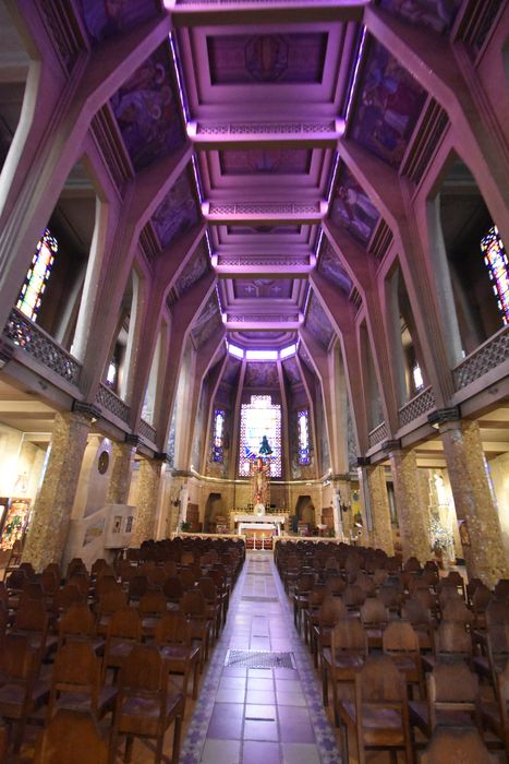 Les pères de l'ordre salésien de Don Bosco commandent en 1933 une église, sanctuaire national de leur saint patron, qui s'inscrivait à l'origine dans un projet plus vaste de bâtiments destinés à un patronage et un internat à l'usage de jeunes défavorisés. Eglise des chantiers du Cardinal, elle ne reçoit aucun financement du diocèse pour sa construction. L'église est l'oeuvre d'un architecte méconnu, Demetrius Rotter. Celui-ci s'est inspiré, pour la silhouette extérieure, de l'église de Perret au Raincy pour créer un édifice au voûtement angulaire proche des réalisations de Dom Bellot. Son décor homogène est l'oeuvre de la société Mauméjean Frères qui donne les dessins, réalise le décor peint, les mosaïques et une partie des vitraux. Antoine Bessac et Jean Gaudin se partagent le reste des verrières. Cet édifice donne un exemple des derniers décors figurés des églises avant leur disparition après-guerre.