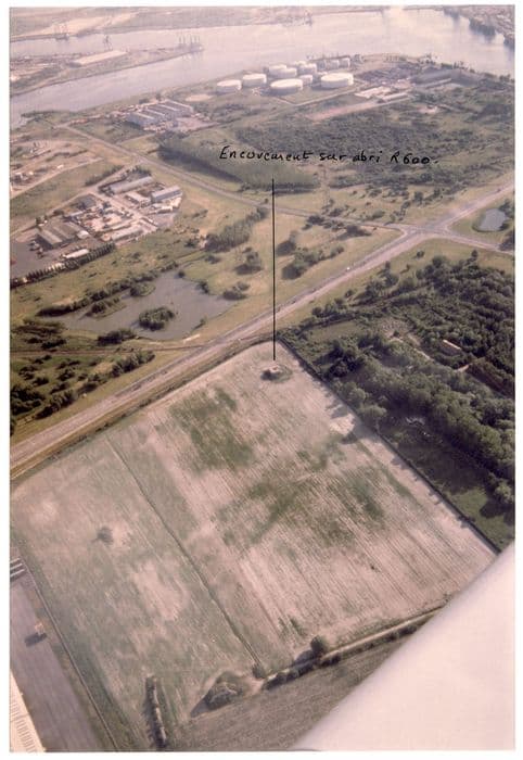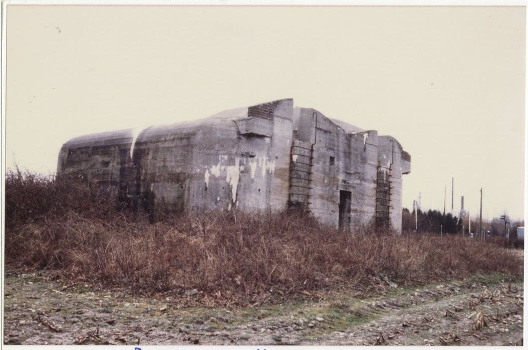 Encuvement sur abri de type R 600 pour canon antichar de 50 mm, appartenant au dispositif de la forteresse du Havre et du Mur de l'Atlantique, mis en service novembre 1942, destiné à bloquer la route sud vers le Havre par les marais, le long du canal de Tancarville. Vraisemblablement construit en 1943, il se compose de deux parties superposées : un gros abri bétonné à entrée de plain-pied sur l'arrière avec sas d'entrée donnant sur une chambre de troupe et une soûte à munitions, et un encuvement pour pièce d'artillerie situé sur le toit de l'ouvrage. Etant à la fois isolé et en élévation, ce blockhaus devait nécessairement être camouflé ; un pignon de brique avec oculus placé sur le toit prouve qu'il était recouvert d'une toiture et avait l'apparence d'une maison d'habitation. La pièce d'artillerie d'origine a été déposée dans les locaux de l'association Remember Le Havre
