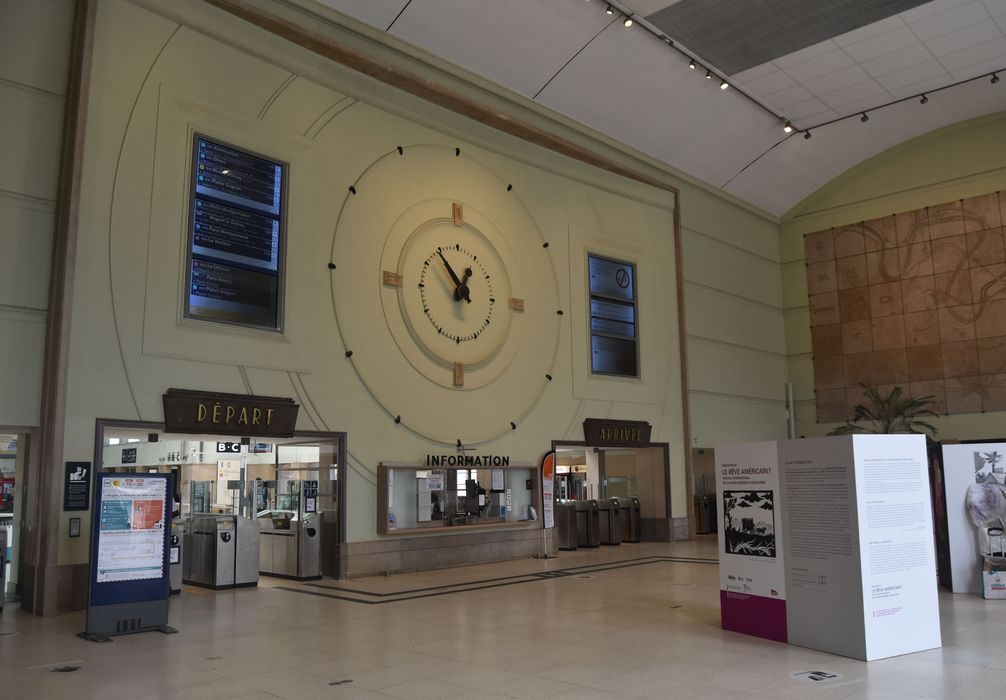 Façades et toitures de l'ensemble de la gare ; quais et édicule de l'horloge ; salle des Pas Perdus, hall des voyageurs, galerie (cad. BS 120) : inscription par arrêté du 14 avril 1998