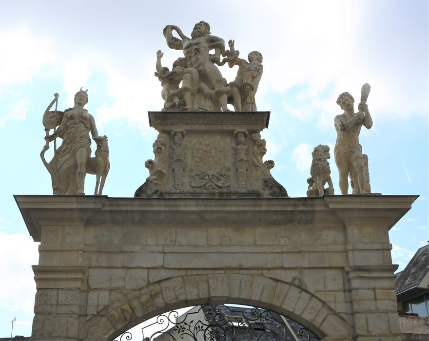 Le portail monumental à l'entrée est orné de trois groupes sculptés inspirés de modèles antiques : Laocoon et ses fils, Diane chasseresse, Hercule et le lion de Némée. Cet ensemble se démarque par son originalité dans la production régionale.