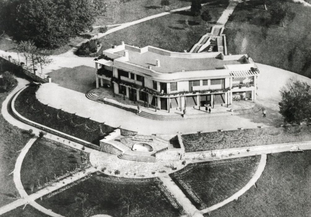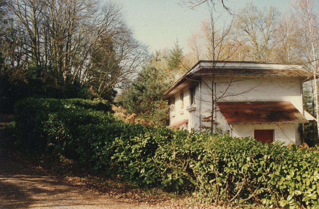La villa Monteux à la Texonière est située sur la commune de Saint-Martin-Terressus, en arrière de la vallée du Taurion et dominant un large panorama qui s'étend jusqu'aux monts d'Ambazac. Elle a été construite pour Maurice Monteux (1882-1963) , dans les années 1932-1934, sur les plans de l'architecte limougeaud Pierre Chabrol (1881-1967). L'édifice est une ample demeure construite en béton, à deux ailes en V très ouvert articulées sur une petite rotonde centrale à l'ouest. La sobriété de la facture s'inscrit nettement dans le courant moderniste, mais le développement en longueur et la rigoureuse symétrie qui gouverne l'ensemble relèvent d'une conception néo-classique. La façade principale, à l'est, oppose le dessin vertical de travées longilignes, unissant les deux étages d'habitation, à l'horizontalité soulignée de la façade ouest, adoucie par les incurvations du plan, où la terrasse et le balcon continu, prolongé en pergolas à l'étage, invitent à profiter de la vue et de la lumière. La distribution intérieure est commandée par un grand hall à l'italienne qu'animent deux paires d'arcs biais en béton, soutenant le plafond. Il est traversé par une coursière sur piliers circulaires. Des détails d'aménagement (salon central rond, portes pleines en bois à encadrement mouluré, serrurerie, parquets) apportent de discrètes touches d'élégance. Un petit pavillon d'entrée, à l'origine garage et logement de domestique, a été transformé en habitation. Malgré l'ouverture de portes-fenêtres, son aspect extérieur est relativement intact. Cette réalisation est visiblement inspirée de luxueux programmes contemporains, et particulièrement des villas conçues par Louis Süe (1875-1968) pour des personnalités parisiennes du monde de la mode et du spectacle dans les années 1920, et qui travailla aussi pour la famille Monteux, notamment pour Gaston, le père, créateur d'une des plus importantes entreprises françaises de confection de chaussures. Conservée dans ses aménagements d'origine, cette villa paraît un bon témoin des réalisations provinciales de la période Art Déco dans la région de Limoges. Les équipements de confort, à l'intérieur, présentent même déjà un intérêt presque archéologique. La biographie de Pierre Chabrol est encore très mal documentée, bien que l'on ait un catalogue relativement fourni de ses réalisations. Il semble avoir reçu sa formation d'architecte dans une école d'arts décoratifs. Le parc de 11 ha qui entoure la villa, est attribué par la tradition familiale à Robert Lepeu, horticulteur-paysagiste de Limoges. Situé sur un versant occidental en pente douce, il est composé selon deux grands axes centrés sur la villa qui reste visible de partout : un axe nord-sud comprenant le chemin d'arrivée à partir de la maison de gardien et une allée de tilleuls terminée par un portique et un court de tennis ; un axe est-ouest ponctué par un rond point formant point de vue autour d'un réservoir d'eau, un escalier à double rampe encadrant une cascade aujourd'hui asséchée et remplacée par des plantations, et une fontaine dans le mur de terrassement formant socle en avant de la maison. Les allées, bien entretenues, constituent des promenades de lisières et de sous-bois. Cette dernière franchit une rivière anglaise et une petite pièce d'eau sur une passerelle en béton sans garde-corps, aux lignes épurées. Une photographie aérienne, de peu postérieure à la construction, montre un arc de cercle de parterres en avant de la maison. Si certains aménagements de ce parc ont été réalisés dans le style des années 1930, l'ensemble a toutefois été conçu dans la tradition des jardins paysagers tels qu'on les rencontre en Limousin.